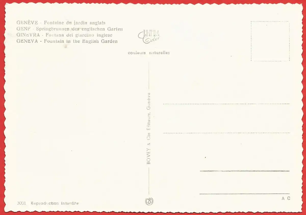 Motiv: Suisse - Genève : La Fontaine du Jardin Anglais. Verlagsangaben: Rovey, 3001.