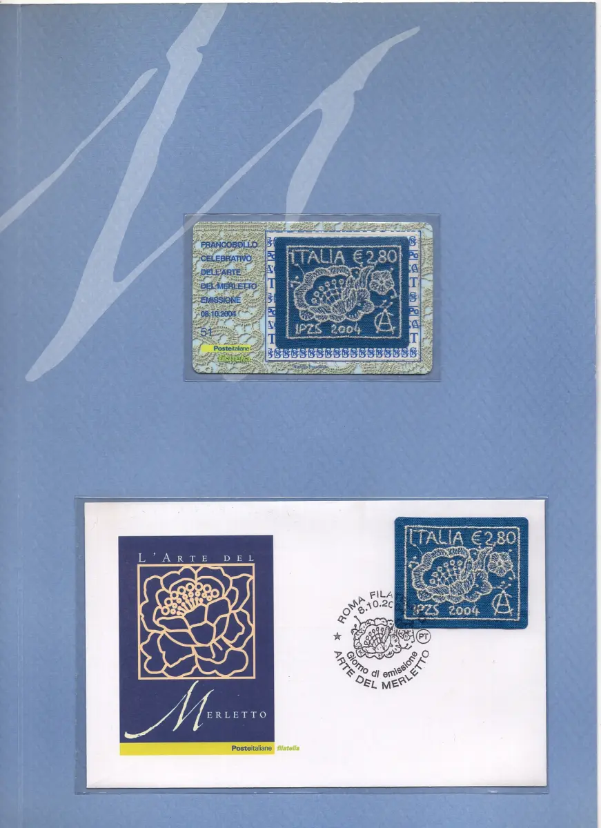 Gebraucht - 2004 Folder l'Arte del spitze - Enthält die neue Briefmarke, die Philateliekarte und den FDc-Umschlag sowie ein Spitzenlesezeichen - Cod. 4027/WEB