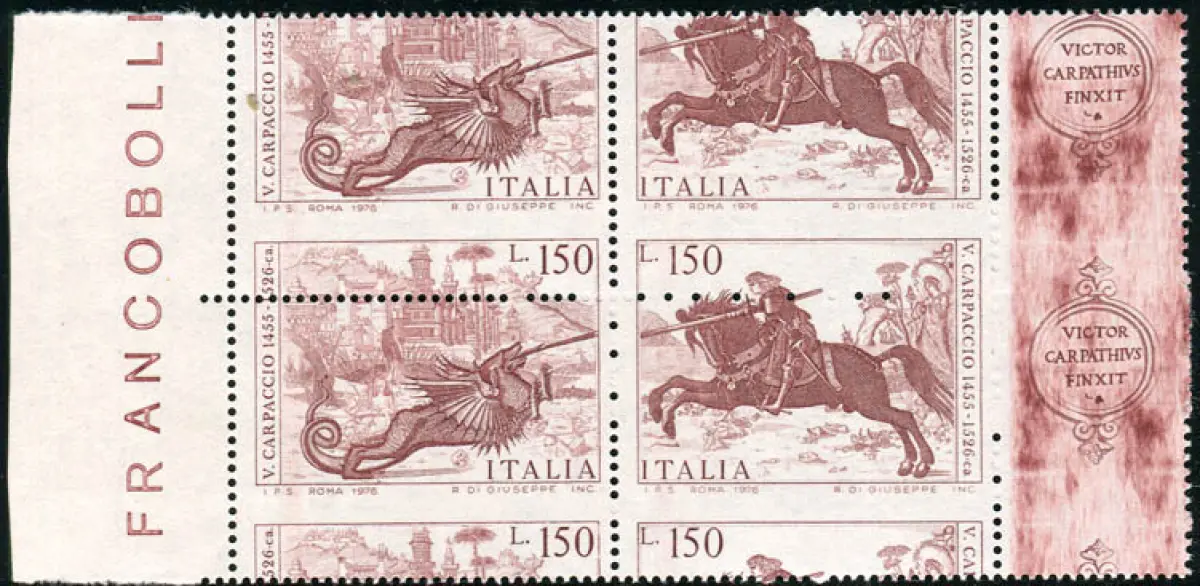 Carpaccio Sorte Verzahnung Vollgummi - Carpaccio Nr. 1340/1341 Vertikaldrehmoment b. von f. des Triptychons mit stark verschobener horizontaler Verzahnung L. 150 unten statt oben - rechts teilweise ungezähntes Exemplar - Ungewöhnlich Cod. 790/13