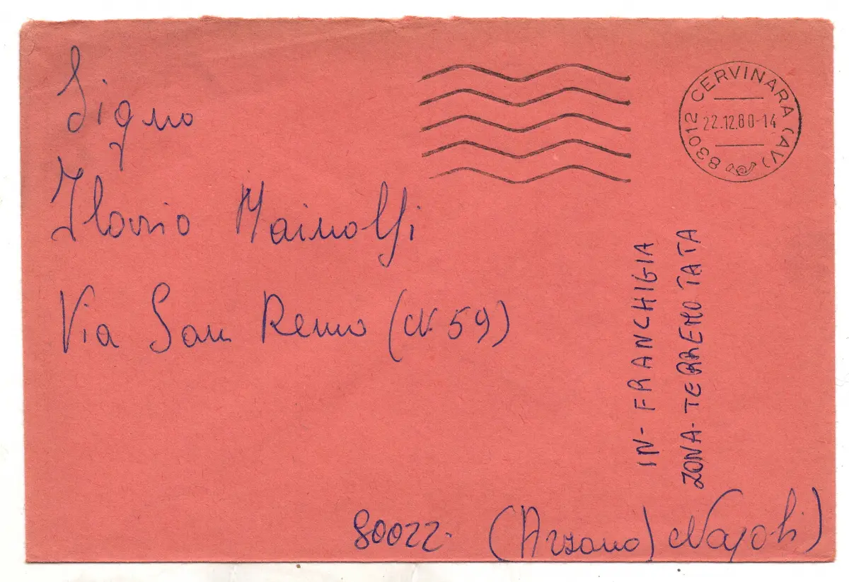 BEUTEL - Erdbeben Irpinia - Freizeitiger Umschlag, der am 22.12.80 von Cervinara (AV) versandt wurde - seitlich mit einem Stift Terremotata Zone - Ohne Stornierung der Ankunft Cod.450/182