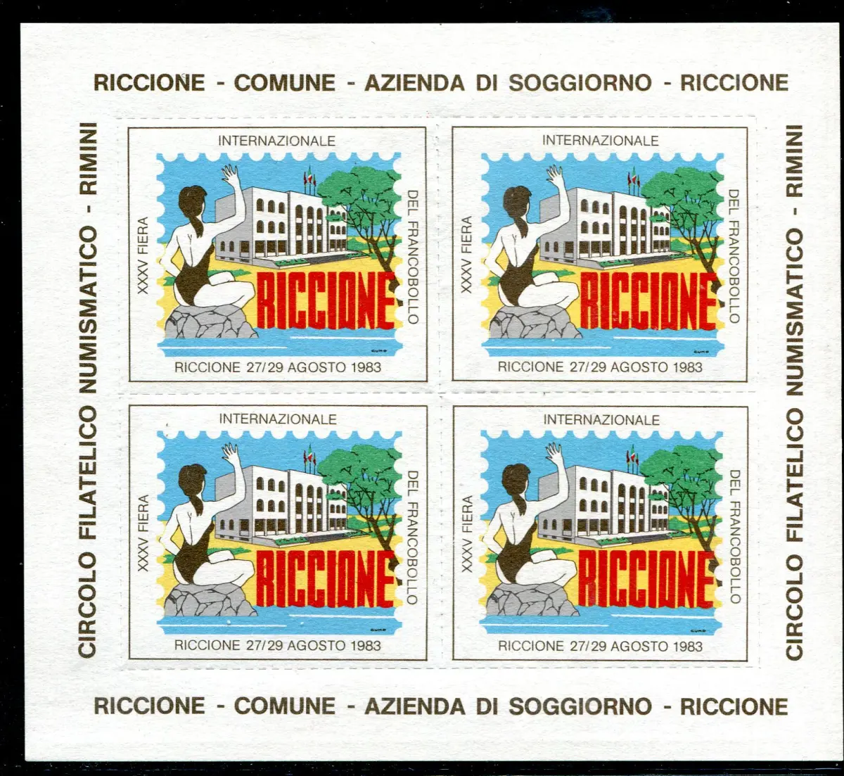 Vollgummi - Erinnerungsbogen zur XXXV Internationalen Briefmarkenmesse Riccione 1983 - gedruckt von der Staatspolygraphie in limitierter Auflage - ungewöhnlich - Nr. 12/WEB