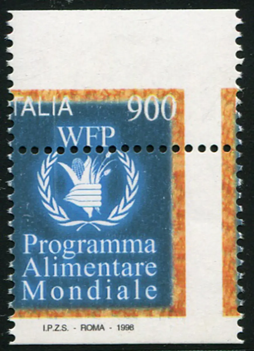 Vollgummi - Lebensmittelprogramm Lire 900 Nr. 2349 mit einer einzigen stark zur Mitte verschobenen oberen horizontalen Verzahnung (Sass. spec. n. 1983Ea) - Selten - Kat. 400 n. 657/6