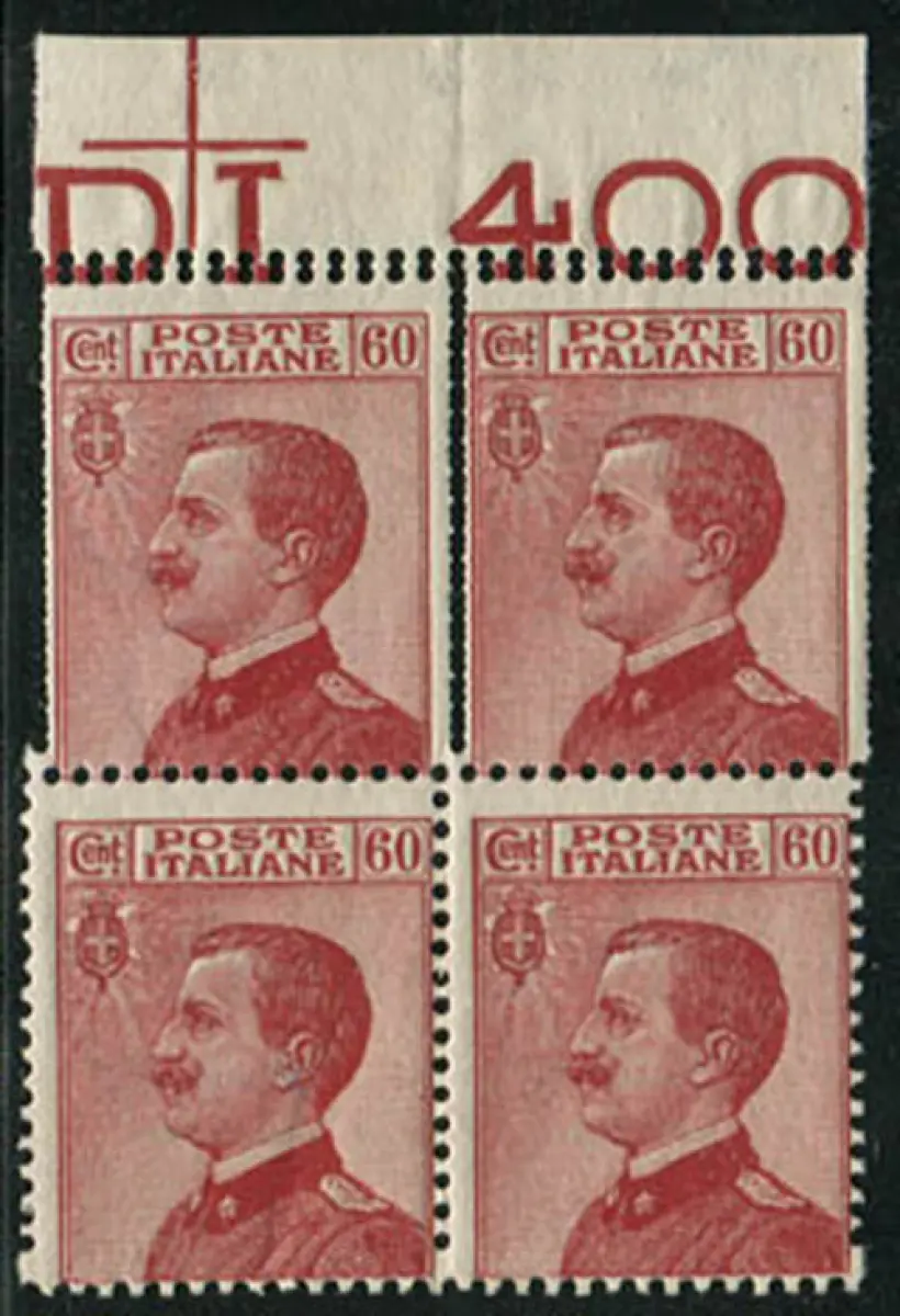 Michetti Cent. 60 Sorten Doppelverzahnung Vollgummi - Michetti Cent. 60 Karmin Nr. 116l Viertel b. von f. mit Doppelzahnung auf zwei Exemplaren oben (Doppelkamm) - auffällig und ungewöhnlich - Kat. € 540 Code 239/11