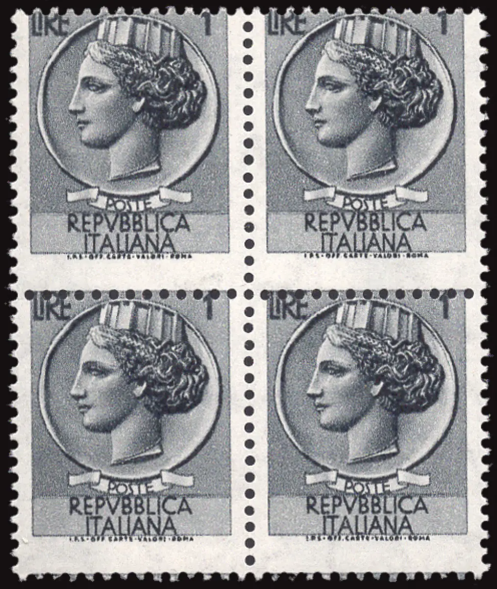 MNH - Vollgummi - Syrakus Lire 1 Nr. 761/Ii Viertel mit stark verschobener horizontaler Verzahnung - Selten - Kat. euro 320 Cod. 763/17