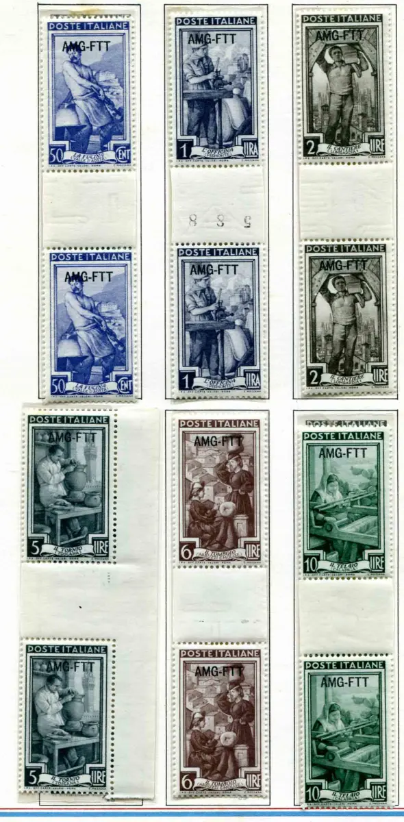 Triest Arbeit 13 Werte in Paaren getrennt in der Mitte durch Gruppenzwischenraum Vollgummi - Arbeit - 13 verschiedene Werte in Paaren getrennt in der Mitte durch Gruppenzwischenraum (Nr. 89/98 + 100 + 101 + 104) - Schönes Set zur Spezialisierung dieser Serie - Selten Code Nr. 631/4