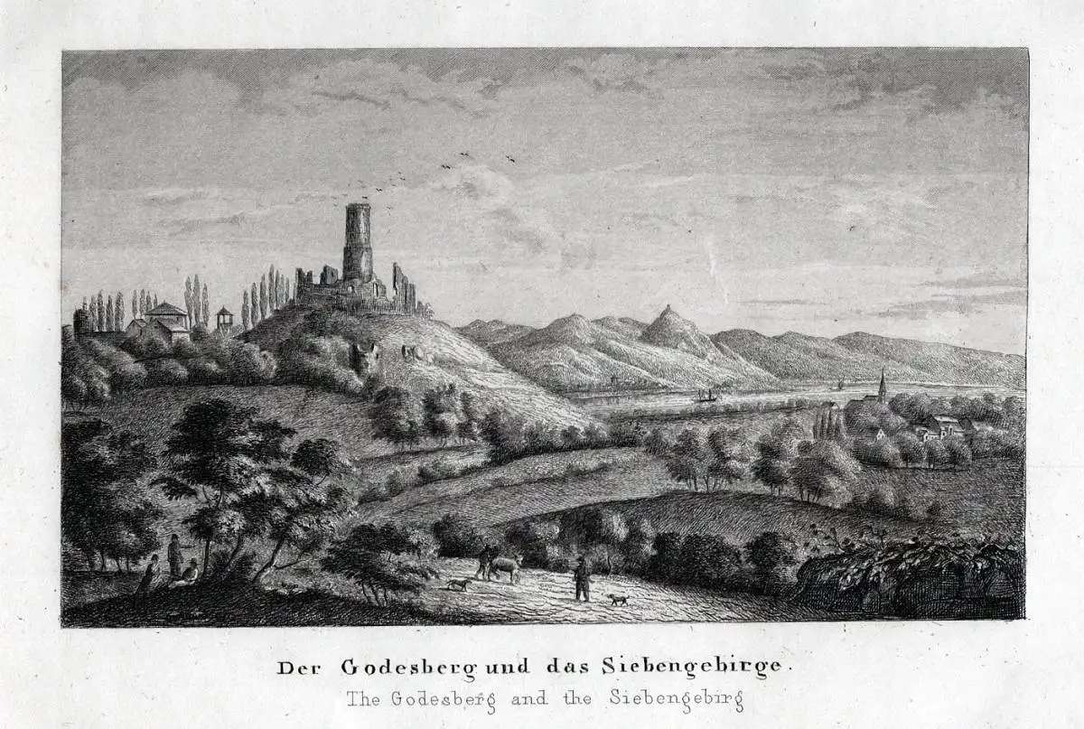 Bad Godesberg - und das Siebengebirge . Originaler Stahlstich von 1858