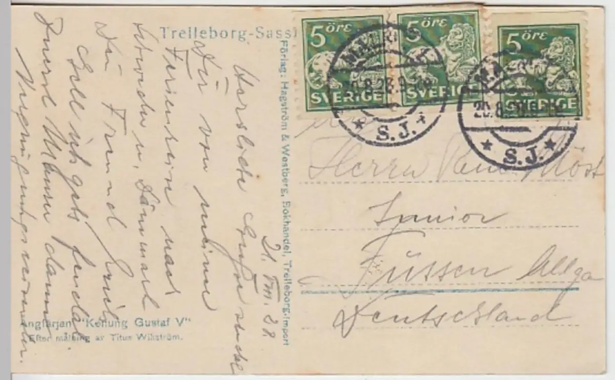 - (22316) Künstler Ansichtskarte, postcard, PPC - Titus Wikström, Fähre König Gustav V. 1928