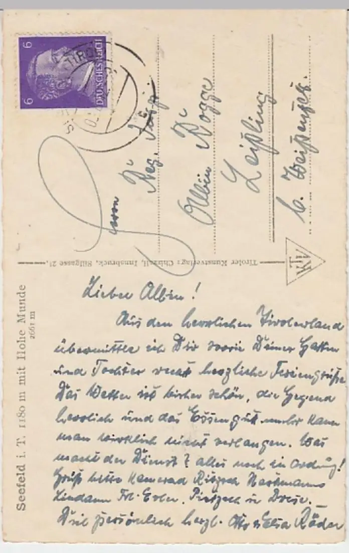 - (28700) Ansichtskarte, postcard, PPC - Seefeld i.T., Ansicht mit Hohe Munde 1942