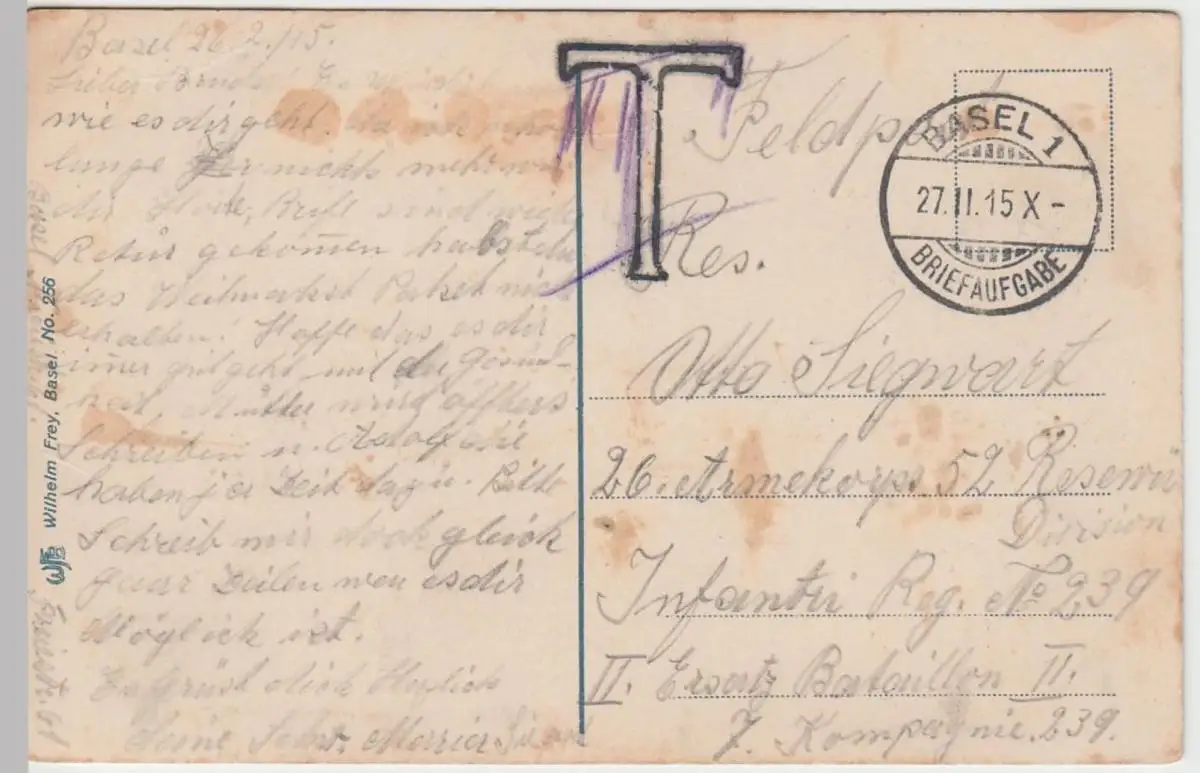 - (48497) Ansichtskarte, postcard, PPC - Basel, Johanniterbrücke, Feldpost 1915