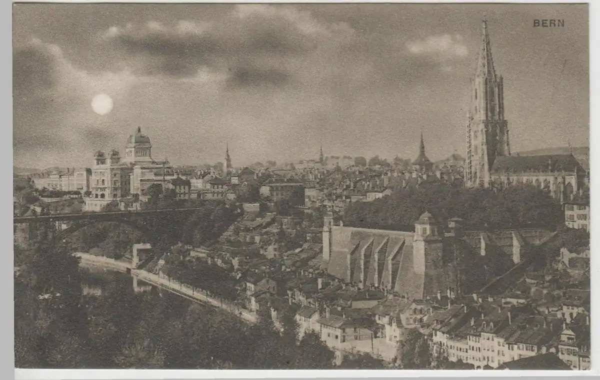 - (74380) Ansichtskarte, postcard, PPC - Bern, Gesamtansicht bei Mondschein, vor 1945