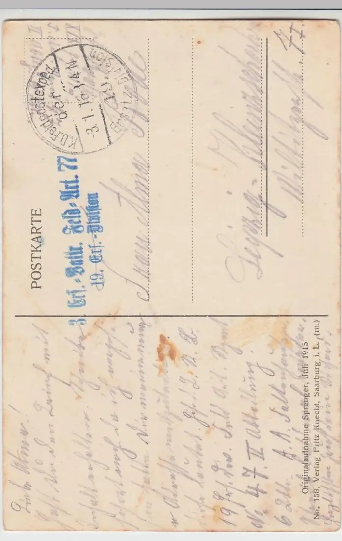 - Feldpost: 3. Ers.Battr., Feld Art. 77, 19. Ers. Division