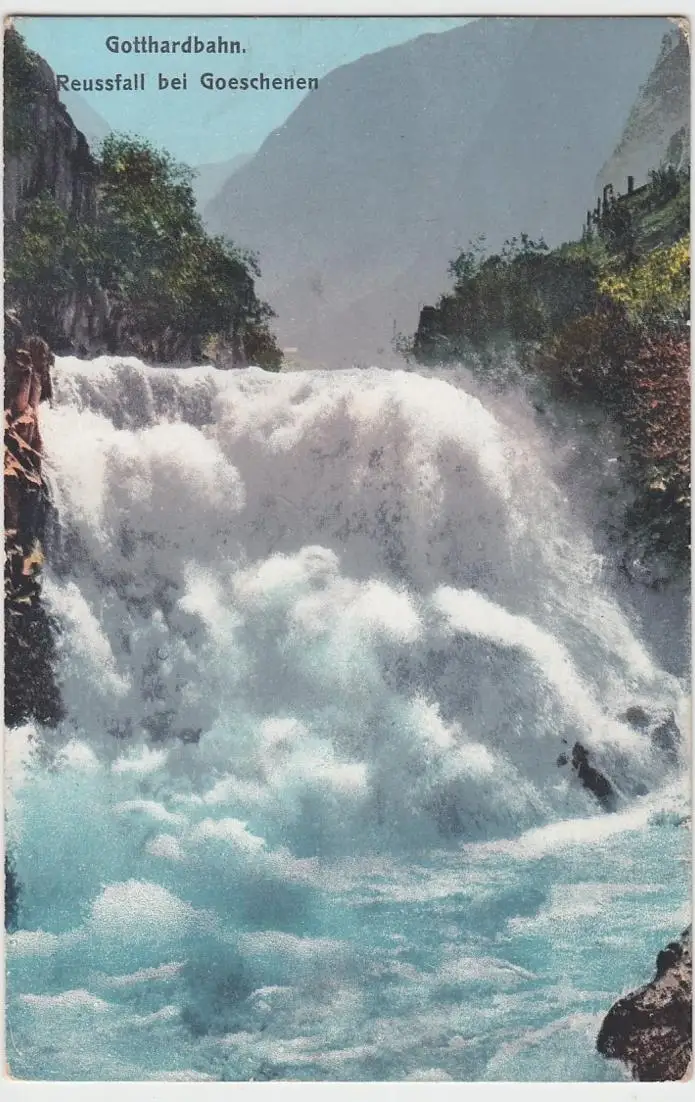 - (98913) Ansichtskarte, postcard, PPC - Reussfall bei Göschenen, Gotthardbahn, vor 1945