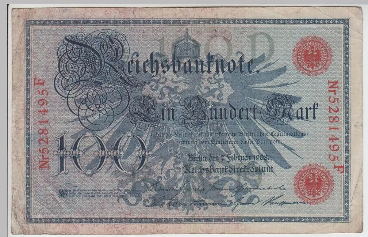(D1011) Geldschein Reichsbanknote, 100 Mark 1908