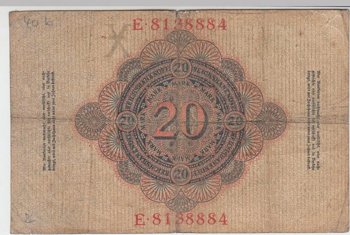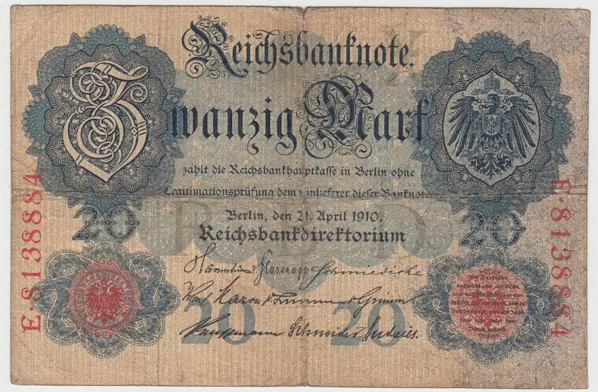 - (D1012) Geldschein Reichsbanknote, 20 Mark 1910