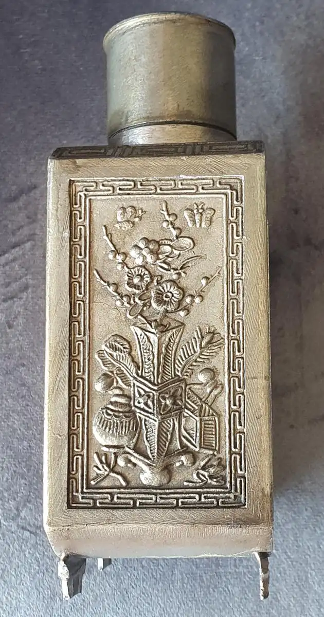 Antike chinesische Teedose, ein sogenannter Tea Caddy aus Zinn.