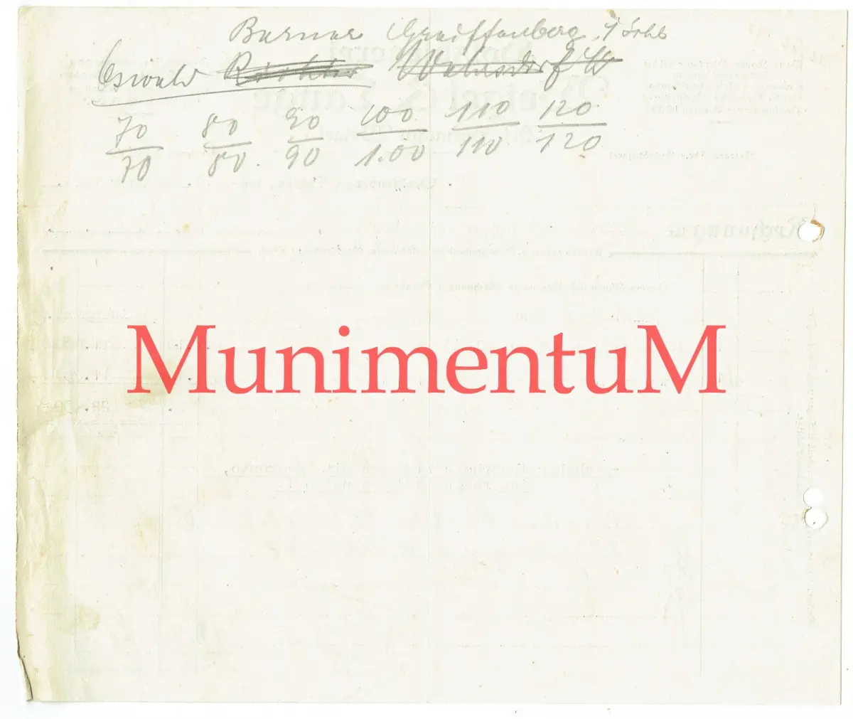 Die Dokumente können auf den Scans (300 DPI) ggf. nicht sichtbare Risse / Einrisse / Abrisse sowie Knicke und Flecken aufweisen! Das bitte ich höflich beim Kauf zu berücksichtigen.Verkauft wird stets im ungereinigten Originalzustand. Ist die Rückseite nicht abgebildet, findet sich i.d.R. auch keine Notiz und auch kein Aufdruck auf derselben.