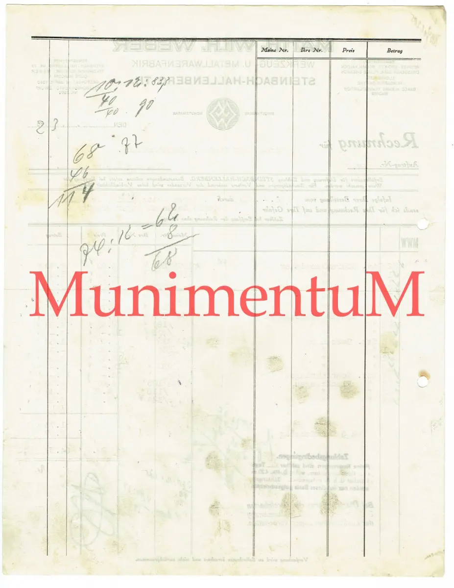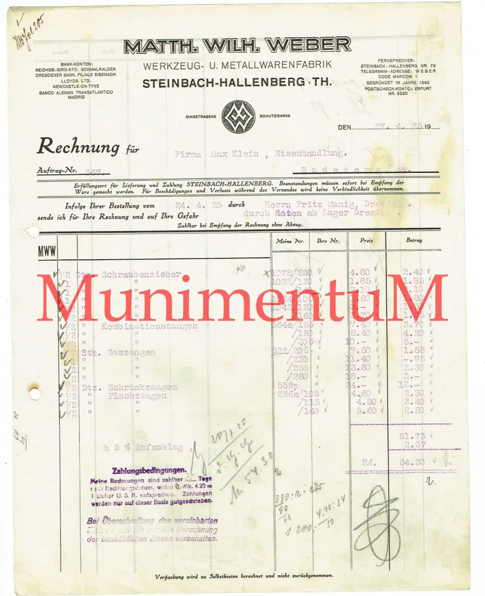 Matth. Wilh. Weber STEINBACH - HALLENBERG i. Thüringen Rechnung 1925