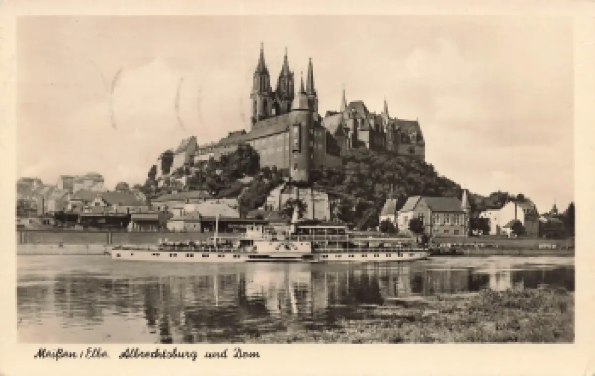 01662 Meißen Albrechtsburg und Dom mit Elbdampfer "Einheit" o 1957