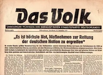 Das Volk Sonderausgabe - zur Rettung der deutschen Nation - Landesorgan der SED Hildburghausen 15. September 1951