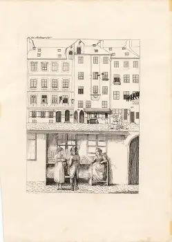 München in der Sendlinger Gasse original Kupferstich mit Brot Verkäuferin um 1810