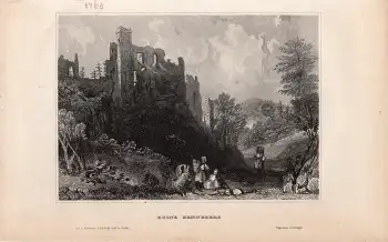 Ruine Henneberg Thüringen original Stahlstich um 1850 Bildgröße 15,6 x 11,2 cm