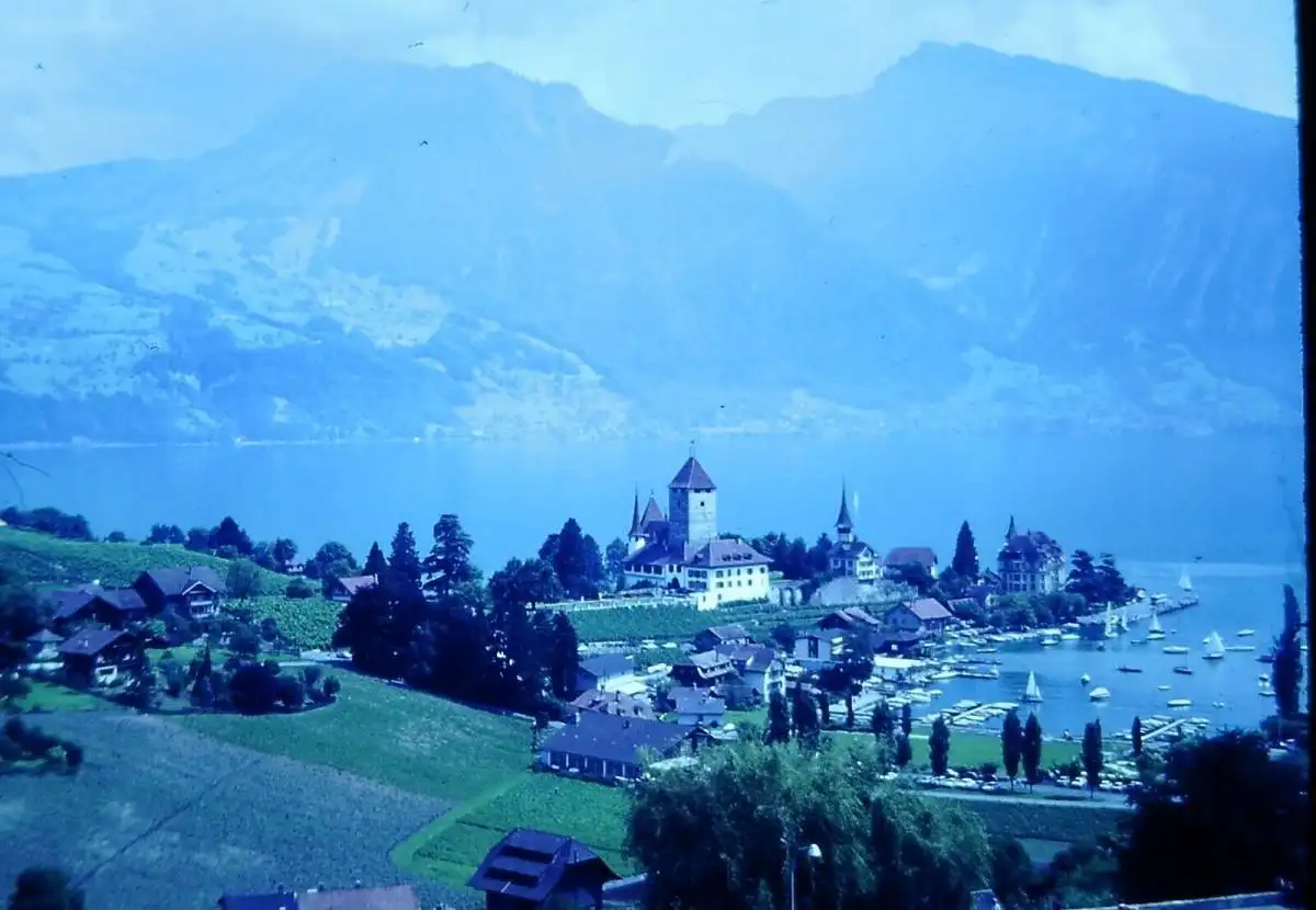 Vintage Dia Film Slide 35mm Schloss Spiez Thunersee Schweiz '70s B9/100