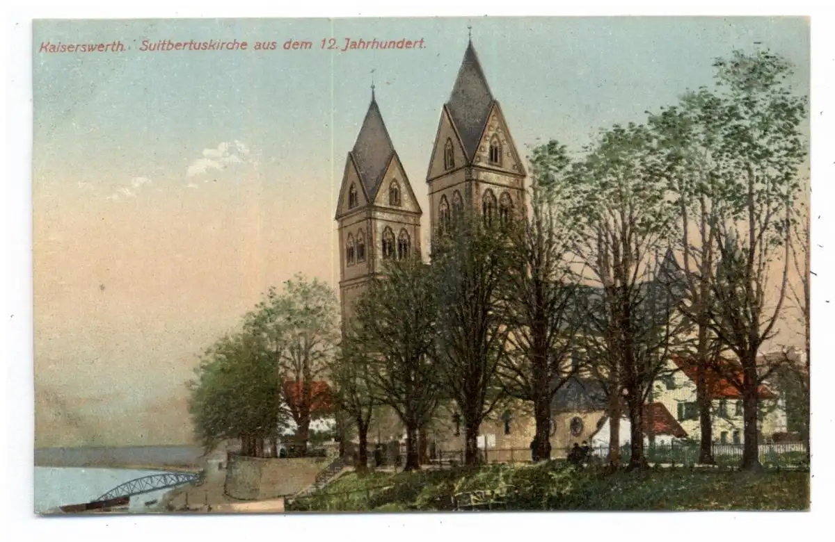 [Ansichtskarte] 4000 DÜSSELDORF - KAISERSWERTH, Suitbertuskirche am Rhein, 1909, Verlag Apel.