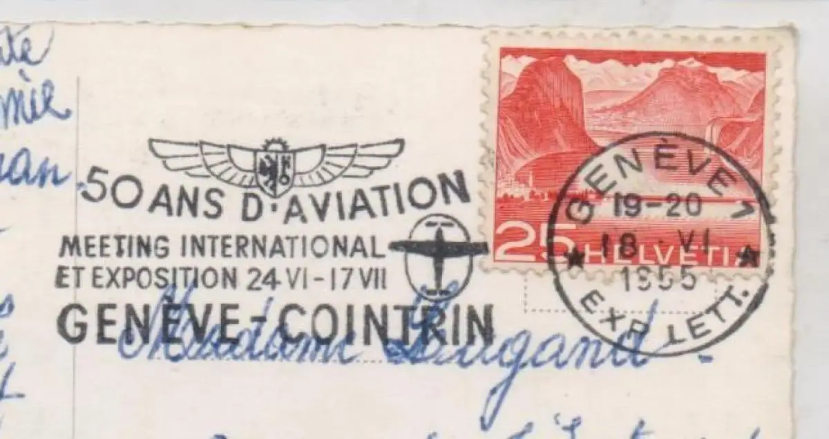 FLUGHAFEN GENF / GENEVE COINTRIN, Sonderstempel 50 jähriges Bestehen 1955