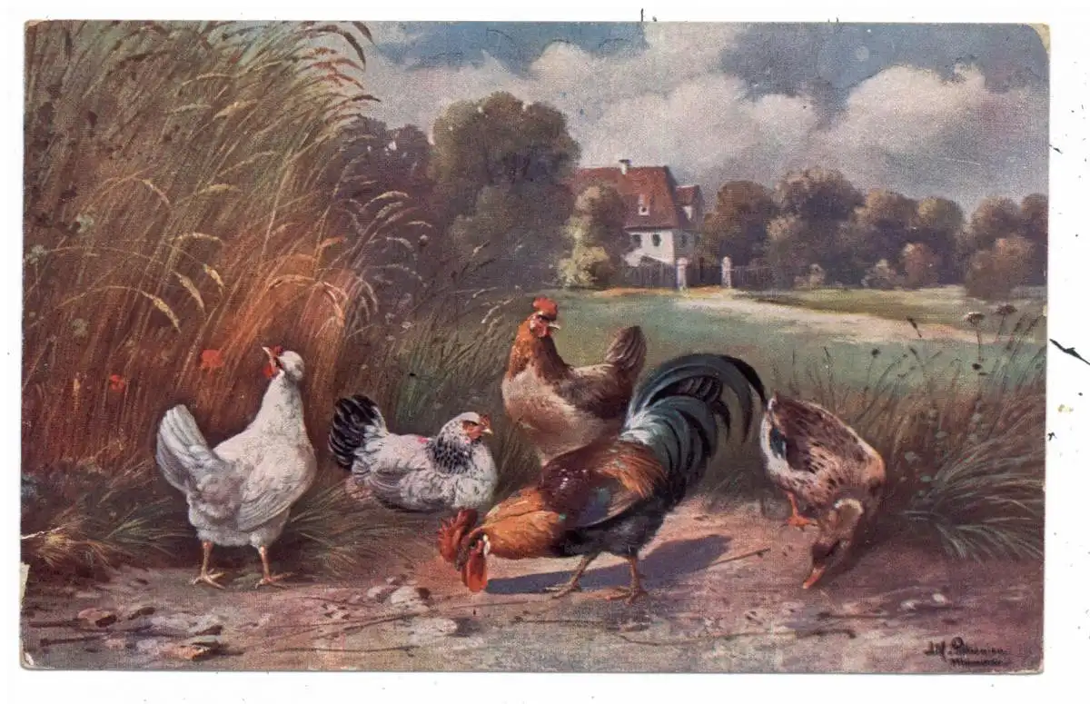 LANDWIRTSCHAFT - GEFLÜGEL / POULTRY, Hühner, Ente, Künstler-Karte Alfred Schönian