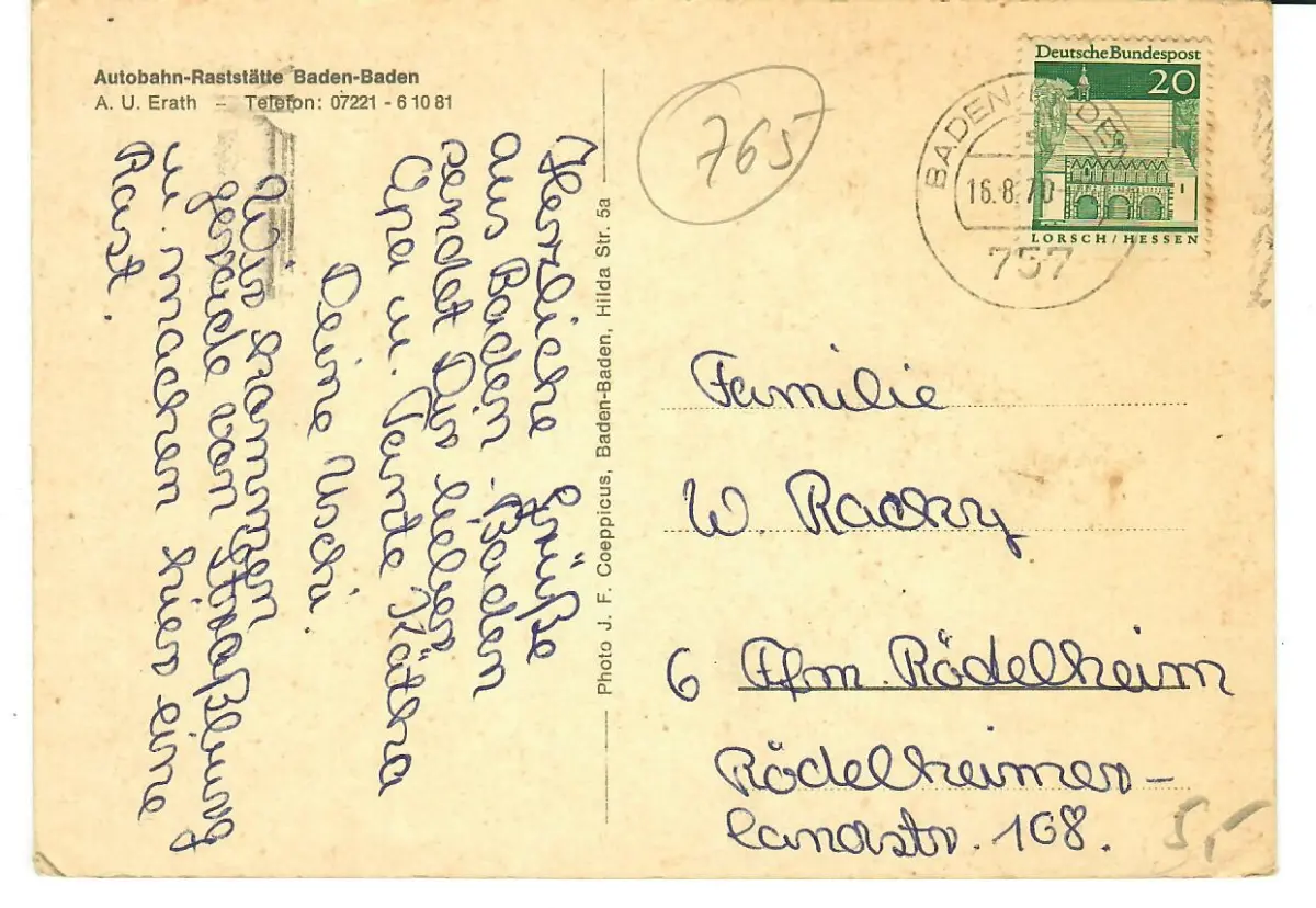 Alte Postkarte - Ansichtskarte 1970 gelaufen Erhaltungszustand: 2 - gut erhalten, siehe Scan Alte Originale weisen durch ihr Alter Gebrauchsspuren auf. Diese Zeitzeichen stellen keine Mängel dar. Bitte beachten Sie: es können leichte Farbunterschiede zum Original durch Scannen entstehen! Jede Karte wird von uns einzeln begutachtet und der Erhaltungszustand 1 = sehr gut 2= gut - sammelwürdig, aber altersbedingt mit leicht bestoßene Ecken/ Kanten, leichte Beschmutzung 3 = akzeptabel - Mängel wie deutliche Knicke o. Flecken, Beschädigungen Versand- und Verpackungskosten