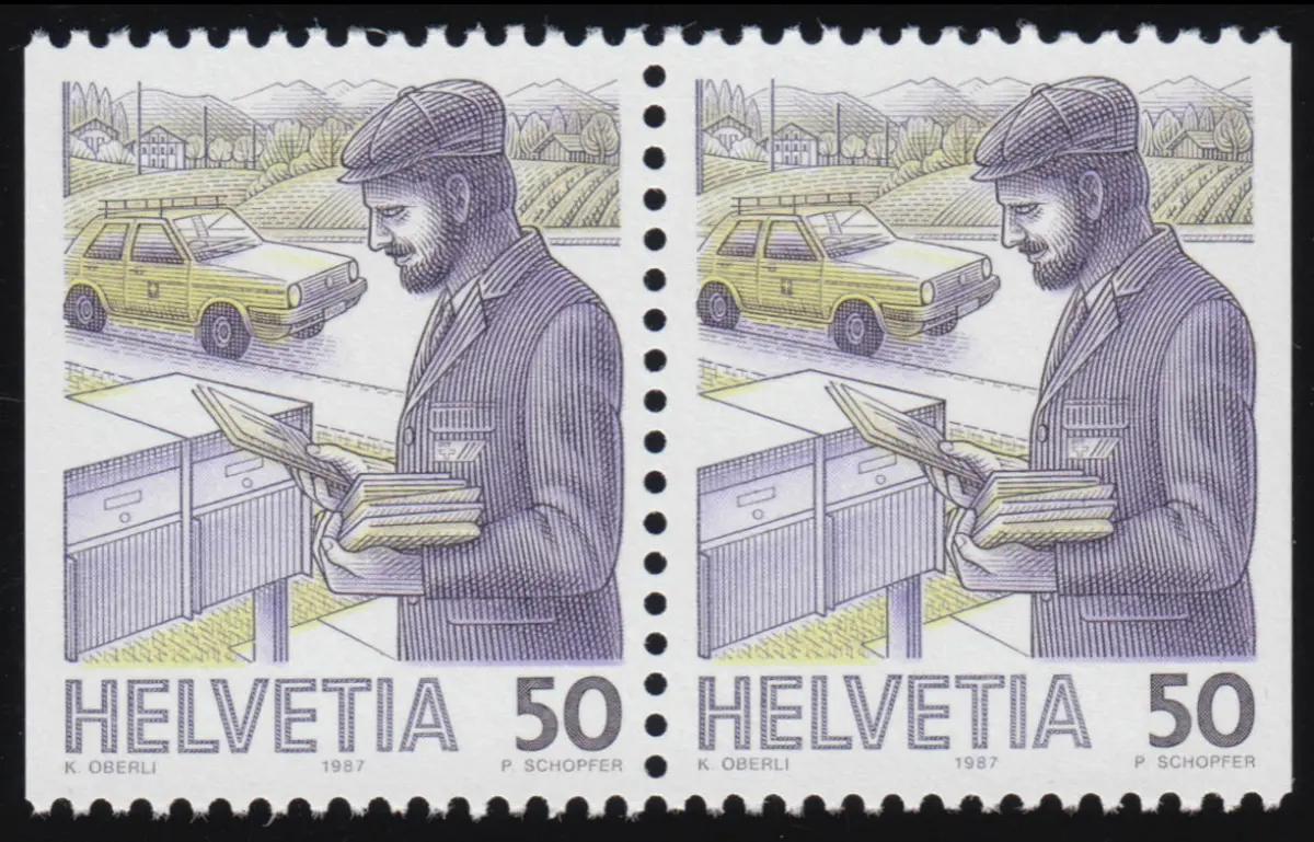 1343 Dl/Dr Postbote 50 Cent, Paar links und rechts ungezähnt, postfrisch **