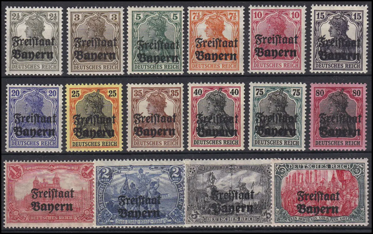 136-151 Aufdruck Freistaat auf Germania, Satz komplett 16 Werte postfrisch **