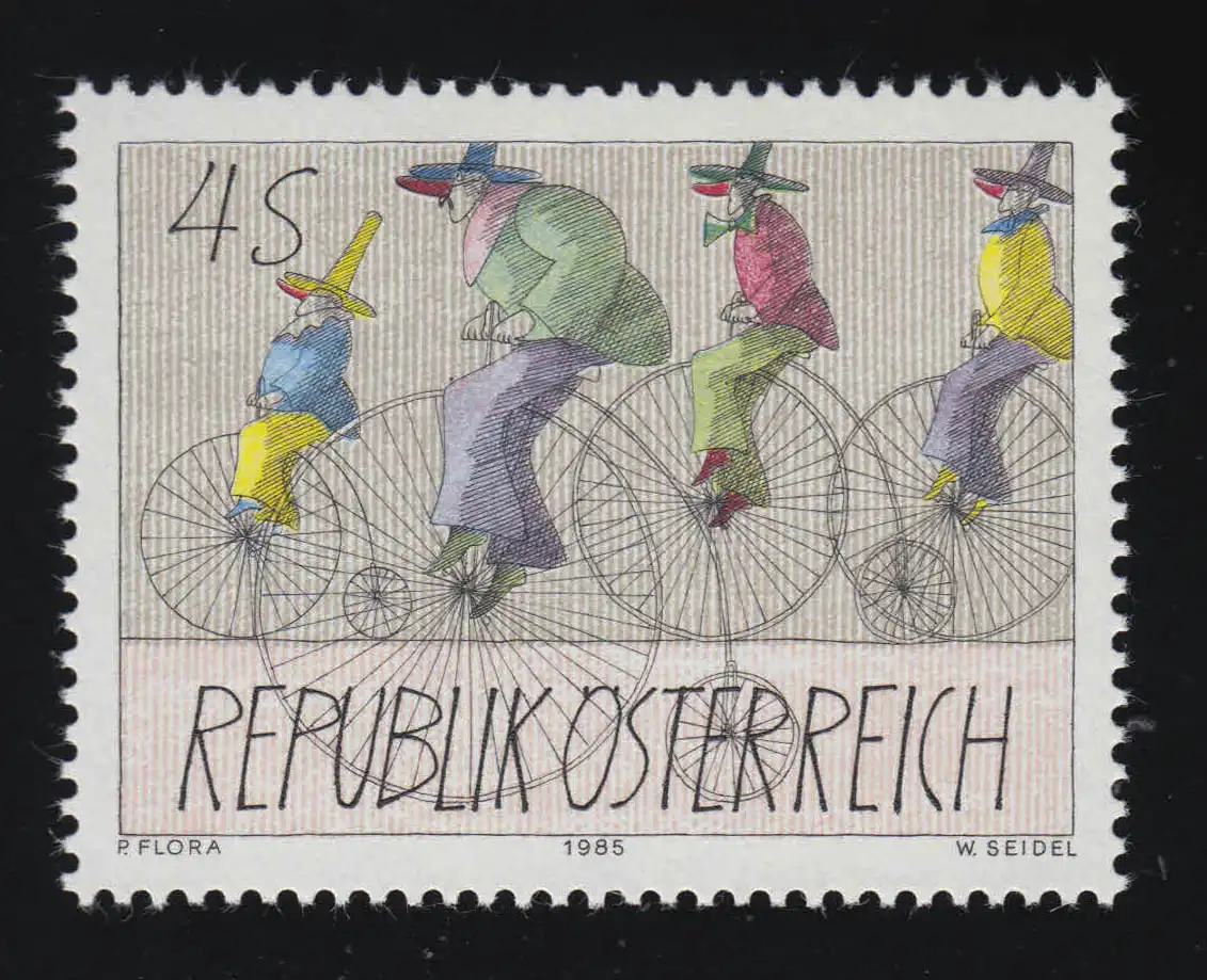 1829 Moderne Kunst in Österreich (XI) Hochradfahrer Paul Flora 4 S postfrisch **