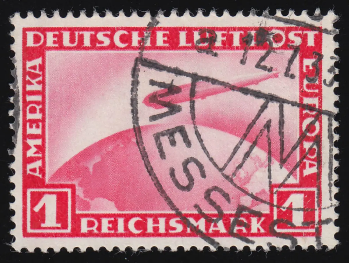 455 Flugpostmarke Graf Zeppelin 1 RM O gestempelt