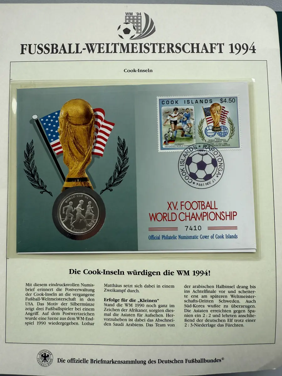 Fußball-WM 1994 USA - Numisbrief Cook-Inseln, Silber, 30 mm