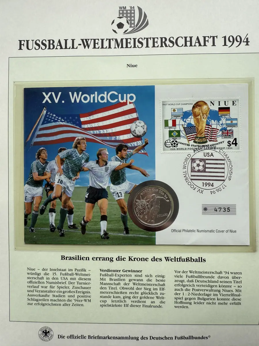 Fußball-WM 1994 USA - Numisbrief Niue, Silber, 30 mm