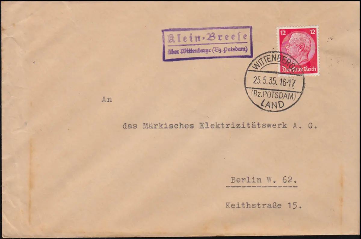 Landpost Klein-Breese über Wittenberge Land, Bezirk Potsdam - 25.5.1935
