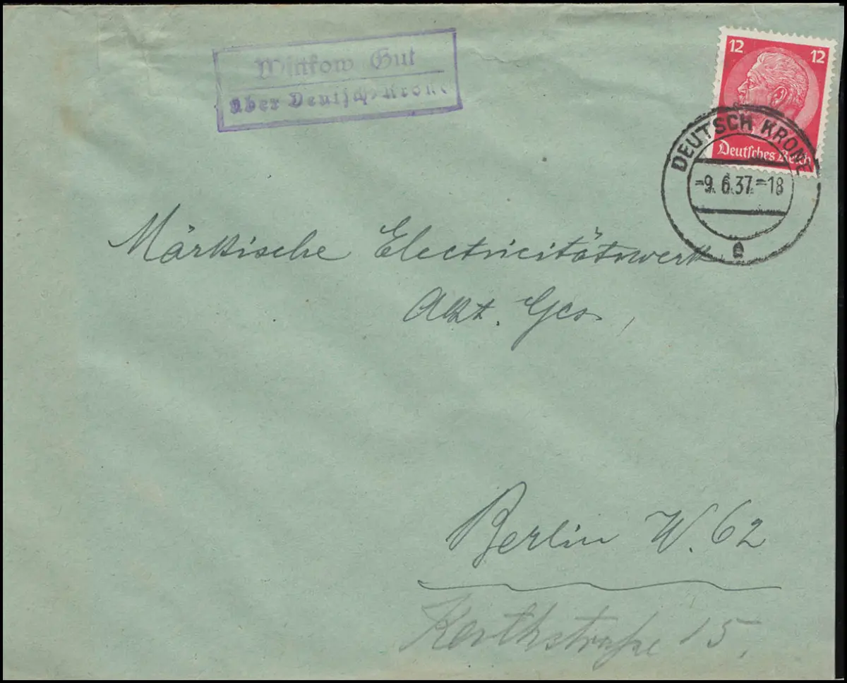 Landpost Wittkow Gut über Deutsch Krone, Pommern 9.6.1937