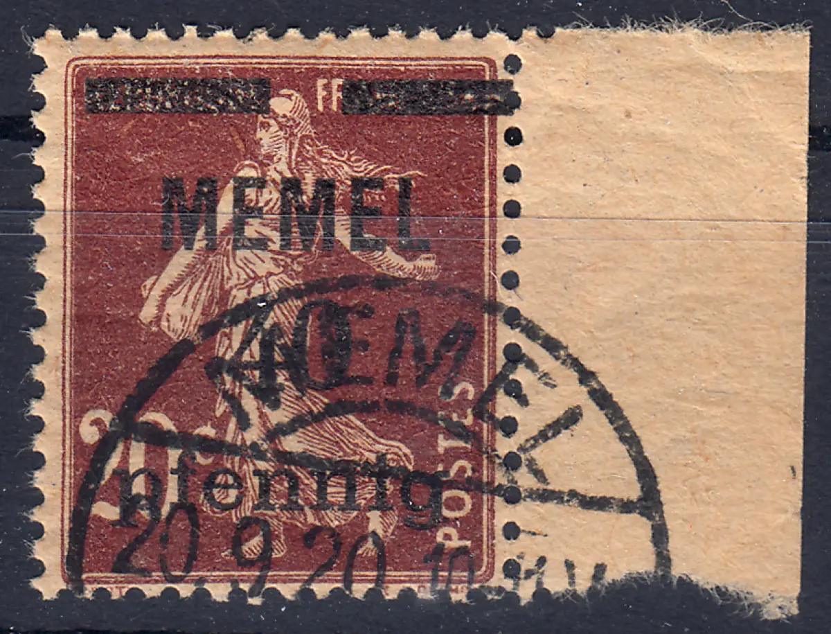 Memel 22a Aufdruck 40 Pf. auf 20 C, GC-Papier, gestempelt O mit Attestkopie