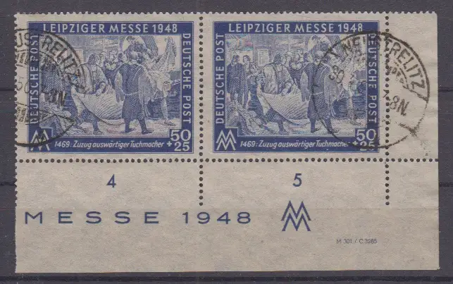 SBZ Leipziger Messe 1948 MiNo. 199 o Eckpaar mit Druckvermerk