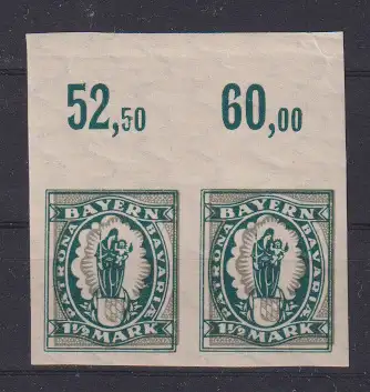 Bayern Freimarke MiNo. 189** OR-Paar Abart ungezähnt und verschobener Graudruck