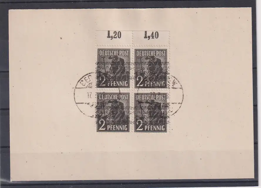 Berlin Vorläufer Bizone OR-4er-Block MiNo. V 36I o Berlin 17.7.48 gpr Schlegel BPP (2Pf Bandaufdruck vom OR Platte dgz)