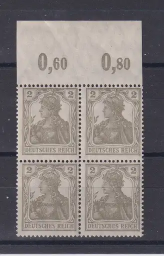 Dt.Reich Germania 2Pf MiNo. 102x ** weißer Gummi OR-4er-Bl. Platte (120.-)