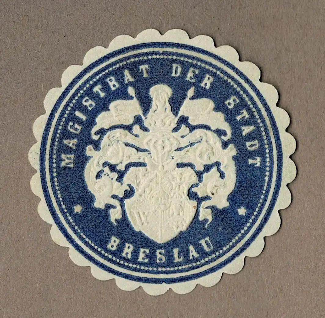 Siegelmarke Schlesien: MAGISTRAT DER STADT BRESLAU (blau)