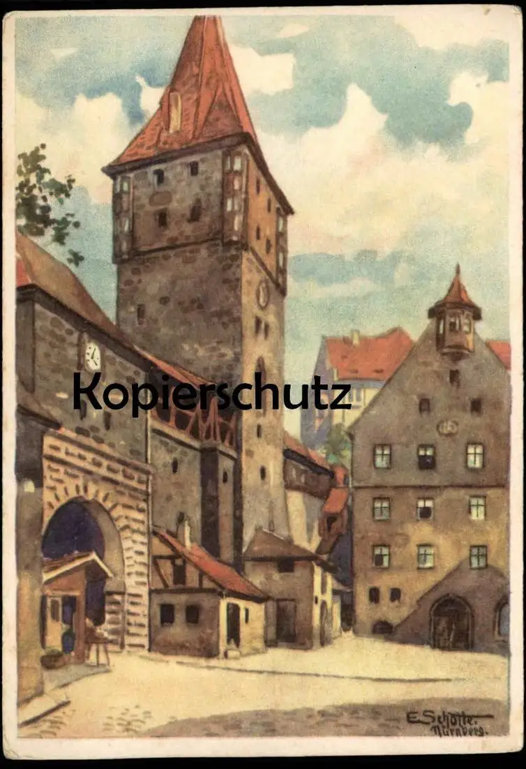 ALTE KÜNSTLER POSTKARTE NÜRNBERG DAS TIERGÄRTNERTOR GEGEN PILATUSHAUS UND BURG EDUARD SCHOTTE Ansichtskarte AK postcard
