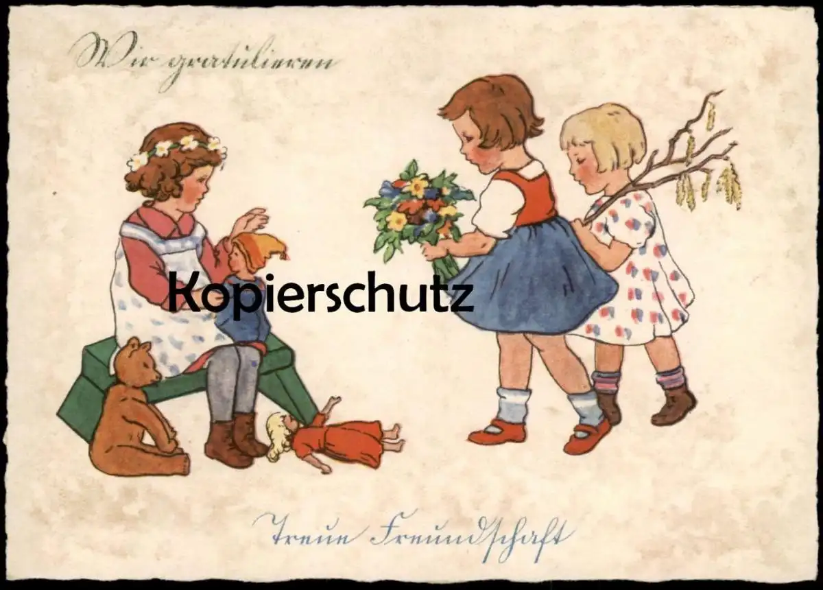 ALTE KÜNSTLER POSTKARTE WIR GRATULIEREN TREUE FREUNDSCHAFT KINDER MÄDCHEN TEDDY BÄR PUPPEN RENATE DRUDEVerlag: Bischof & Klein, Lengerich