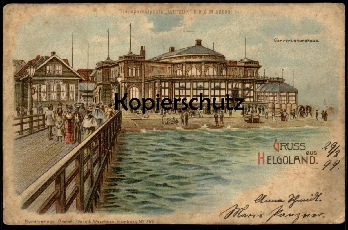 ALTE LITHO TRANSPARENTPOSTKARTE GRUSS AUS HELGOLAND HALT GEGEN DAS LICHT, erkennbar Restaurant Princess Alexandra Paul J. BotterVerlag: Röpke und Woortman, Hamburg, Meteor