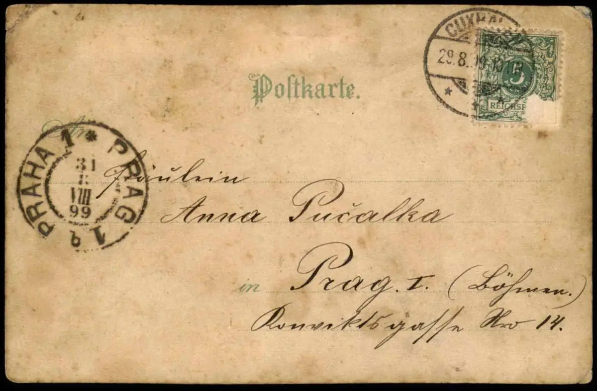 Gelaufen: 29.08.1899 mit Stempel Cuxhaven nach Prag, minimaler Teil der Briefmarke entferntErhaltung (s. Scan): gut, linke untere Ecke minimal bestoßen / 915164