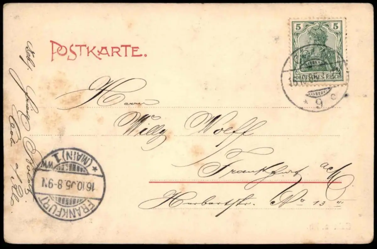 Gelaufen: 16.10.1905 mit Stempel Cöln nach Frankfurt Main, Ankunftsstempel 16.10.1905