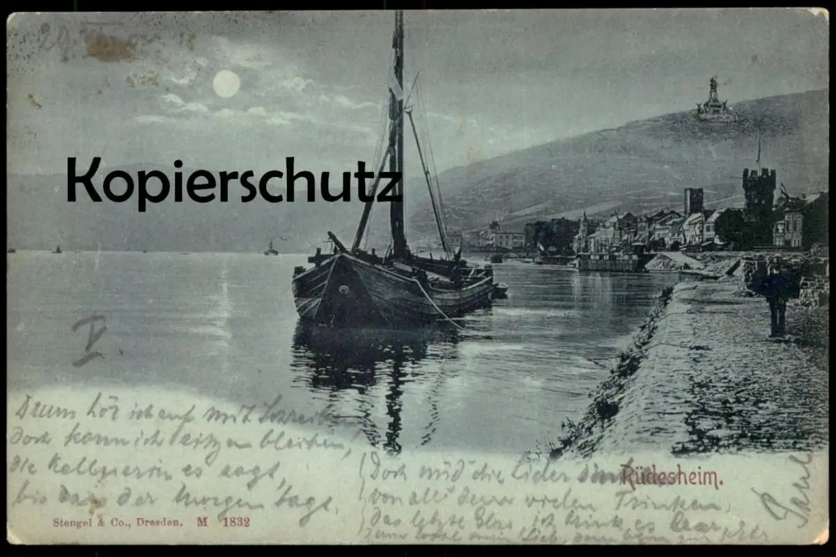 ALTE POSTKARTE MONDSCHEIN RÜDESHEIM Verlag: Stengel & Co., Dresden